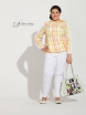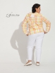 Легкая ветровка с капюшоном. Застежка молния. Рукав втачной, длинный, резинка по низу. Низ изделия тоже фиксируется резиновой тесьмой. По полочке. В фигурных рельефах обработаны карманы. Модель состоит из двух тканей, клетка и однотонная белая.