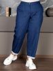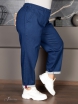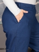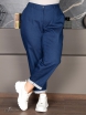 Ультрамодные укороченные брюки, стилизованные по джинсы Mom. Модель выполнена из утепленного, двухслойного денима. На передних половинках брюк расположены крупные накладные карманы с наклонным входом. Для комфорта и удобства в эксплуатации по задней части пояса проходит эластичная тесьма-резинка. Пояс передней части имеет плотную основу. По длине пояса распределены шлевки под ремень. Низ брюк отвернут на лицевую сторону, изнаночная сторона ткани исполняет роль отделки. Боковые швы, на уровне отворота, закрыты декоративной тесьмой. Модель отличает сочетание технологичного материала с оригинальным дизайном модели.